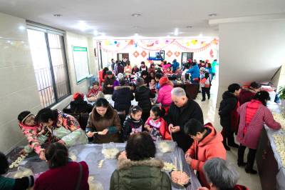 据力行街社区主任胡运桃介绍,社区居民团年已成一种习惯,社区巳连续四年举办社会饺子宴活动,还为特殊人群送包饺子上门,通过开展送亲情、送问候、送饺子上门活动,把做好饺子送给辖区的外来经营户、小摊贩以及生病在床的孤寡老人,空剿老人、留守儿童。让居民感受到幸福和谐的社区 。