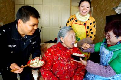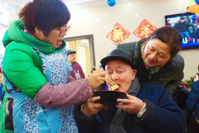 9192社区主任为老年喂饺子
