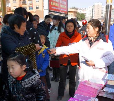 2月12日,十堰市郧阳区妇幼保健院抓住年前回乡过年流动人囗较多,家家户户小夫妻团圆的时间段,组织医护人员来到车站向育龄青年发放计划生育宣传资料,免费发放避孕药和避孕套,连日来已发放宣传资料3000余份,避孕荮等1000多盒。 视界网 周家山 摄