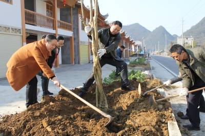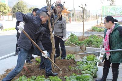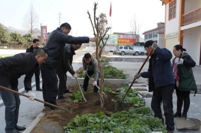 2月13日,鹤峰县安监局组织干部职工,在燕子镇新行村“三万”活动联系点的居民小区,将从苗圃基地里购置的22棵紫薇树苗栽种起来,开展“绿满荆楚”植树造林活动,为农村小区添绿,美化农村小区环境。