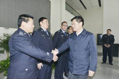 图七,当天,宜城市委书记李诗慰问参战刑警代表。