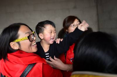 邹春花48岁的父亲邹联保是以打渔维持生计的农民,妈妈自小患有脑膜炎且智力障碍,行为宛如孩童,完全没有劳动能力,因此家庭极度贫困。当地义工协会自去年12月开始,组织100余名义工通过“凑分子钱”、投工投劳等方式为邹春花家新建140平方米的新房,并配齐所有生活用品,让邹春花一家春节前乔迁新居。(视界网 宋文摄)