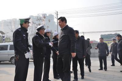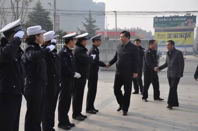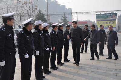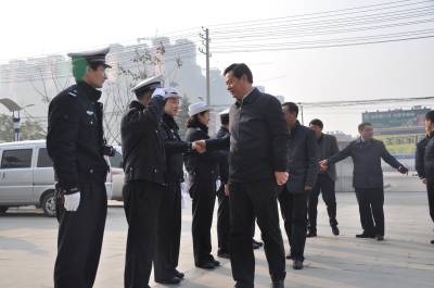 2月12日,汉川市级党政领导在市委副书记、市长翁晔的带领下,看望慰问了一线执勤的交警。图为当日翁市长一行在市公安局交警大队向交警们致以新年问候,感谢他们为维护全市社会大局稳定、服务经济社会发展、保障人民安居乐业所作出的重要贡献。 签约摄影师 邹开建 赵大平摄 通联:汉川市公安局 电话:13197382491 邮编:431600