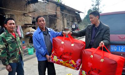 2月15日,恩施市沙地乡秋木村火灾受灾户周金元家收到爱心捐款和生活物资。 一方有难,八方支援!2月2日下午,恩施市沙地乡秋木村大池坝组村民周金元家不幸遭遇大火,使整个家庭物尽财散,所幸无人员伤亡。事后,该乡发出向火灾受灾户周金元家捐款捐物倡议,全乡各社会单位和广大干部群众纷纷伸出双手捐款捐物,表达自己的一份爱心,并将所捐5500多元爱心款和羽绒被、棉衣、大米、油、面条等急需生活物资送到周金元家中,帮助度过难关,让他们一家平平安安过上祥和而温馨的新春佳节。(谭华 摄)