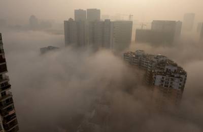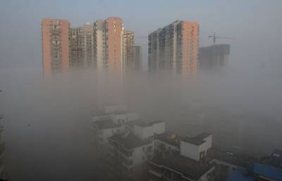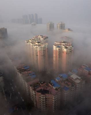 早晨,登搂顶眺望武昌徐家棚一带:大雾中的武汉如同进入仙境 童汉芳摄于2015.2.16摄自武昌徐家棚一带