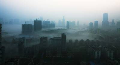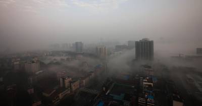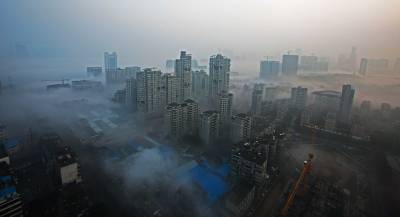 2月16日早晨,武汉武昌区螃蟹岬一带惊现壮观的“平流雾”景观,高楼和山体在雾气笼罩下时隐时现,宛如人间仙境。