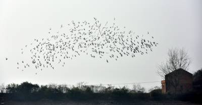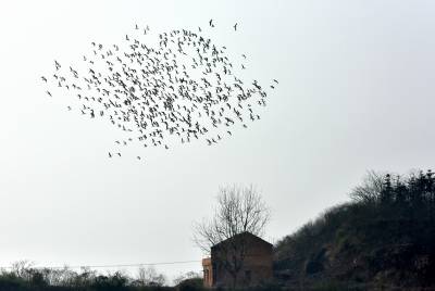 2月16日,武穴市四望镇紫石村张饶垸的一处鱼塘,村民正抽干鱼塘捉鱼,成千上万只沙鸥时而在鱼塘上空盘旋,时而在水中捉食小鱼。刘飞摄