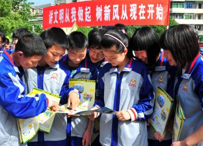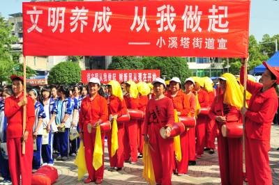2010年5月11日,在湖北省宜昌市夷陵区市民文明素质养成教育暨”文明伴我成长”活动中,3000多名学生、100名社会志愿者和100人腰鼓队走上街头开展洁城和文明宣传活动,发放”文明养成、从我做起”温馨提示宣传单5000多份。本报视界网签约摄影师张国荣摄
