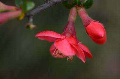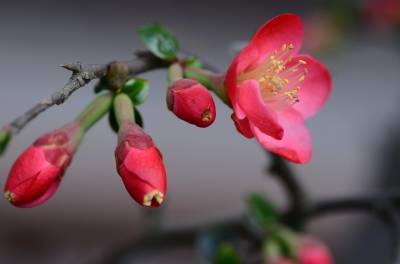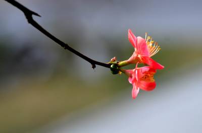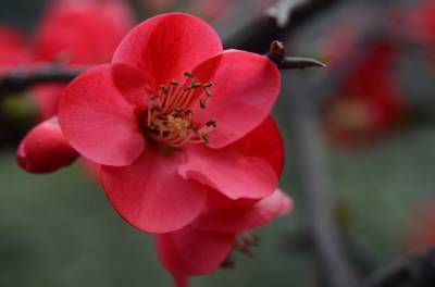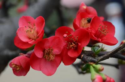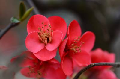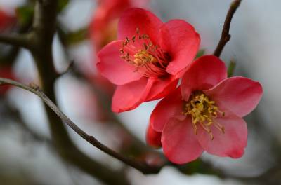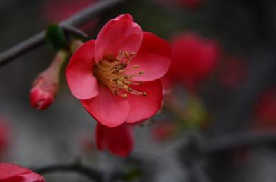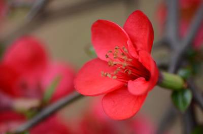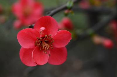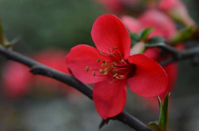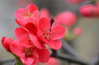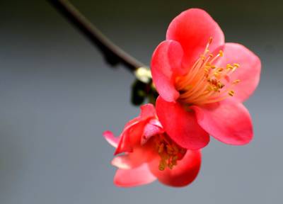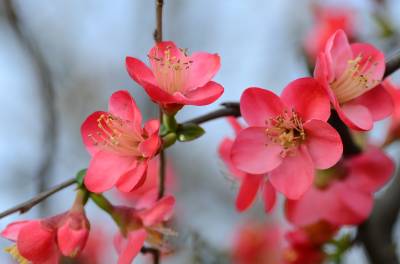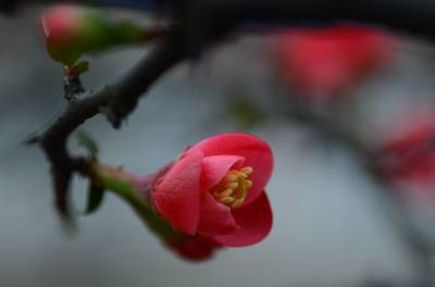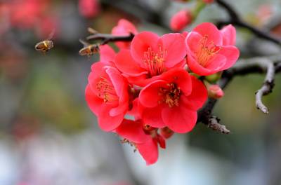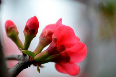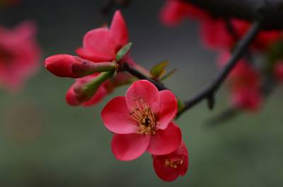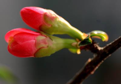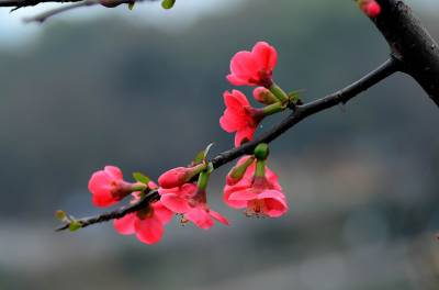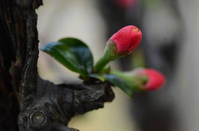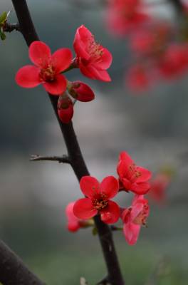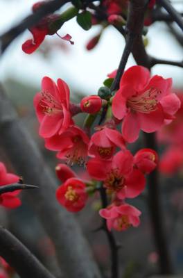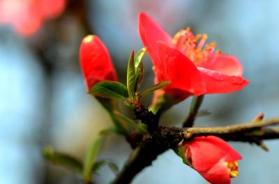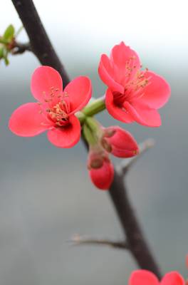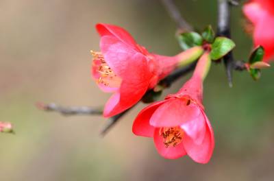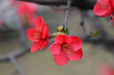 木瓜海棠(学名:Chaenomeles cathayensis Schneid.):落叶灌木至小乔木,高2-6米;枝条直立,具短枝刺;小枝圆柱形,微屈曲,无毛,紫褐色,有疏生浅褐色皮孔。叶片椭圆形、披针形至倒卵披针形,长5-11厘米,宽2-4厘米。花先叶开放,2-3朵簇生于二年生枝上;花直径2-4厘米;萼筒钟状,外面无毛或稍有短柔毛;萼片直立,卵圆形至椭圆形;花瓣倒卵形或近圆形,长10-15毫米,宽8-15毫米,淡红色或白色。果实卵球形或近圆柱形,先端有突起,长8-12厘米,宽6-7厘米,黄色有红晕,味芳香。花期3-5月,果期9-10月。