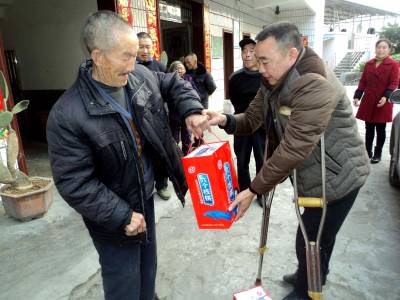 2月17日,宜昌市、秭归县两级政协委员李德新带着妻女,来到该县沙镇溪镇第一农村福利院,看望慰问福利院里的40多名孤残老人,为他们送去营养物资和新年的祝福。