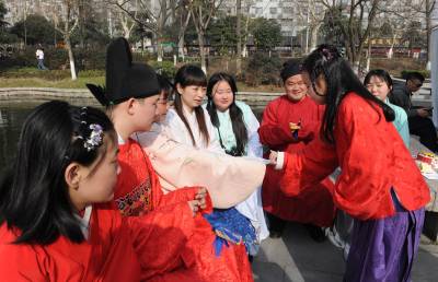 2月17日,襄阳市30余名汉服爱好者汇聚阳春门公园,开展吟诵中华古诗词接龙、手工制作传统灯笼等特色文化活动,传承传统文化,迎接新春佳节的到来。