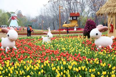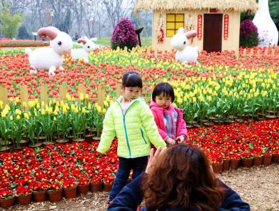 18日,汉口解放公园郁金香花展拉开帷幕。小景“三‘羊’开泰”寓意羊年国泰民安,幸福吉祥,吸引了众多游人。 张垠 摄 武汉市江汉区园林局 430022