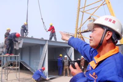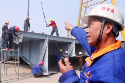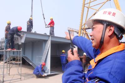 本报荆州讯(通讯员 孟庆虎) 2月17日,蒙西华中铁路公安长江大桥工地的工人们正在钢梁预拼场吊装钢梁。 大年二十九,正是家人团聚的时刻,然而,中铁大桥局蒙华铁路公安长江大桥工地施工却依然热火朝天。工人们放弃春节休假,加班加点推进工程建设,他们舍小家为大家坚守工作岗位,继续为大桥的建设默默地奉献着。