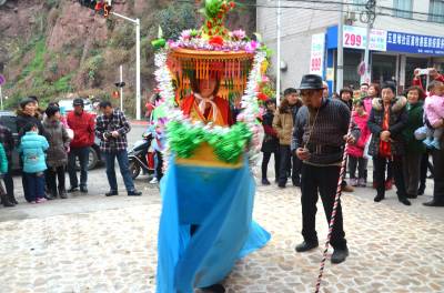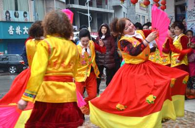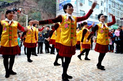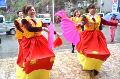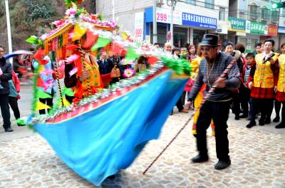 2月19日,巴东县官渡口镇五里堆社区歌舞队正在为社区居民表演采莲船。 该社区组织编排采莲船、鼓儿车、连响、挑花担、歌舞等具有地方特色的文艺节目,从正月初一开始为社区居民巡回演出,送上新年文化大餐、新春美好祝愿。巴东县官渡口镇政府 向传辉摄 电话 18963928551