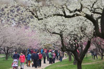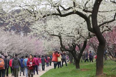 19日是羊年正月初一,不少武汉市民携家带口,相约磨山踏春赏梅,拍照留影。 由于今年入冬以来气温持续走高,磨山梅园350多个品种近2万余株梅花迎春绽放,进入盛花观赏期,成为春节市民聚会游玩的好出去。 邱新明 摄 单位及地址:中共武汉市新洲区委宣传部 430400 电话:13207146140