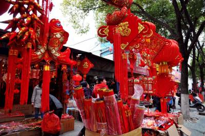 正月初一,三羊开泰。红安县城街上购物人潮涌动,购物汇合,市场繁荣稳定 ,新春味十足。瞧,中国结、大红灯笼、春联琳琅满目,让市民欢欢喜喜迎新春。