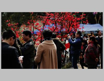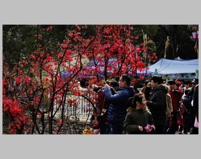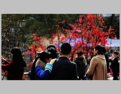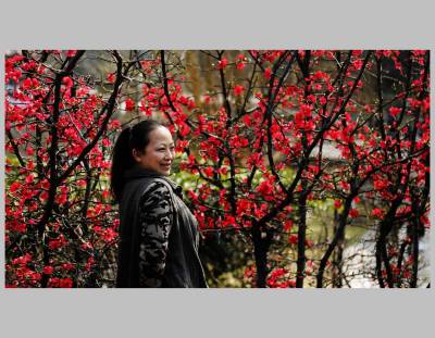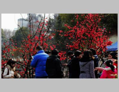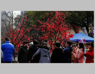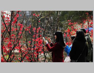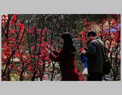 宜昌市儿童公园木瓜海棠盛开,游人如织,新年让花的人们争相拍照,浓浓春意更添新年的兴味。