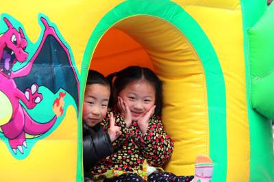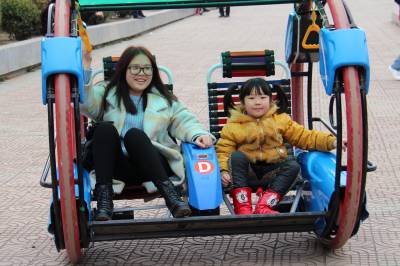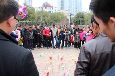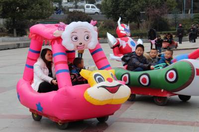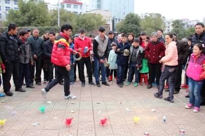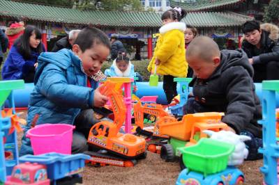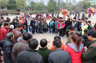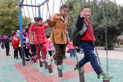 2月24日,小朋友在湖北省十堰市郧阳区文化广场走“铁索桥”。当日是农历正月初六,十堰市郧阳区众多市民走进文化广场,乐享假日过新年。(郧阳区新闻中心 曹忠宏摄 )