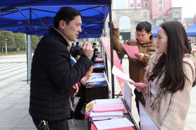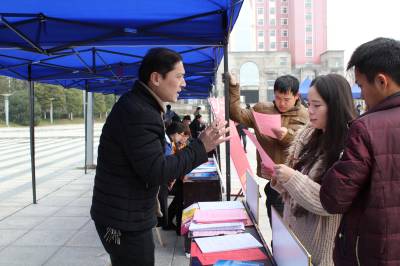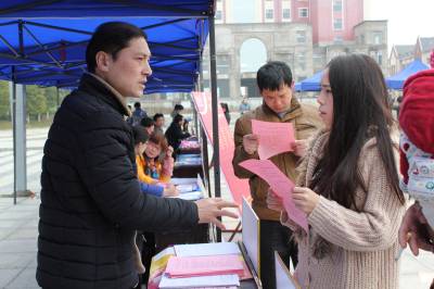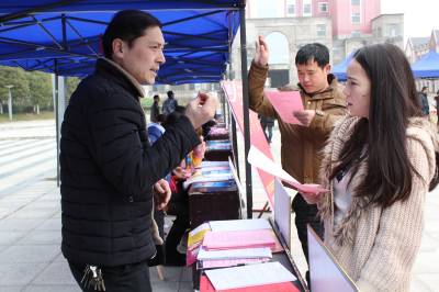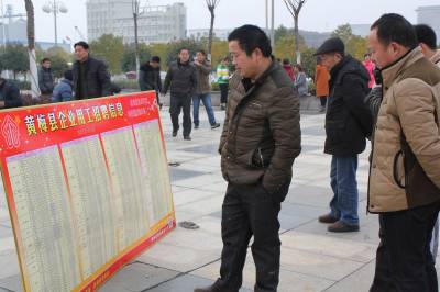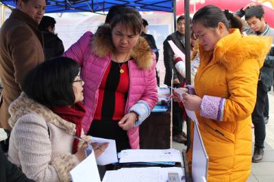 2月24日,返乡人员在咨询台前应聘。当天,湖北省黄梅县举行2015年第17场“春风行动”大型招聘会,邀请49家企业进场招聘,为返乡农民工和大中专毕业生提供就业岗位6000多个,吸引不少返乡人员进场求职,其中600多人与用工企业达成就业意向协议,让返乡人员不再背井离乡,在家门口实现就业。(视界网 吴志雄 摄)
