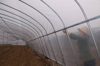 2月25日,竹山县擂鼓镇红岩村菜农正在忙碌着更新蔬菜大棚覆盖薄膜。为从源头上解决蔬菜供应不足的问题,去年以来该县将以城关、擂鼓、上庸等乡镇为重点,新建设施蔬菜基地700亩以上、露地蔬菜基地1000亩以上,确保全县蔬菜重点乡镇专业蔬菜基地面积达到3500亩以上,以有效解决百姓“小菜篮”这一民生大课题。