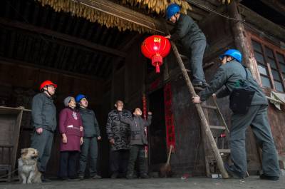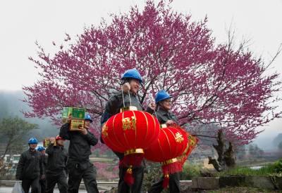 趁着林丽检查小秀巍作业的功夫,蔡永红、向武文、肖祖学、李群超和杨卫华几名队员已经挂上了大红的灯笼,贴好了吉祥的春联和“福”字。摁下开关,灯笼亮了,小秀巍兴奋滴跳着、叫着,爷爷奶奶的脸上也笑开了花!