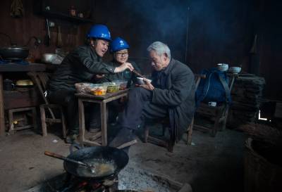 “爷爷,我们来和你一起过年!”一进屋,队员们就放下年货,忙着帮老人打扫屋子,悬挂灯笼、张贴春联。林丽和杨卫华把土火坑烧旺,洗净老人家中唯一的小铁锅,用带来的菜肴为老人做起了年饭。不一会儿,清蒸鱼、红烧肉、手撕鸭、青椒肉丝摆满了小桌子……