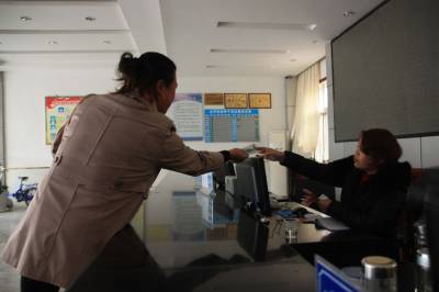 节后上班为民解难 节后上班第一天,竹溪县水坪镇财政便民服务厅内,工作人员万玉凤正忙着为边远村农民陈重意办理新型合作医疗参合业务。 据了解,当日有40位将要返城打工的农民和边远村去年没有来及参合的农民补办了新型合作医疗参合业务,为群众的平安羊年系上安全绳,解决就医难。(视界网 万玉凤 王忠春 摄)
