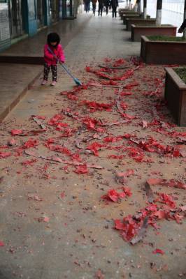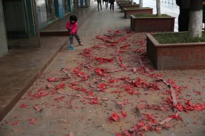 正月初八,是传统商家开门迎宾的好日子,图个吉利,商家一般都要燃放开门鞭。该区商家今年适度燃放开门鞭,并及时打扫。