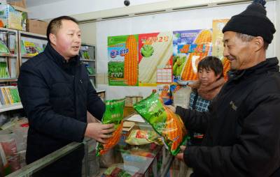 2月27日,农民在保康县城一家种子门市部购买良种。 新春过后,保康县各地农民纷纷购买良种、化肥、农机,准备春耕春种,为新一年的丰收播种希望。(视界网 陈泉霖 旷微 摄)