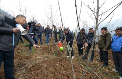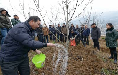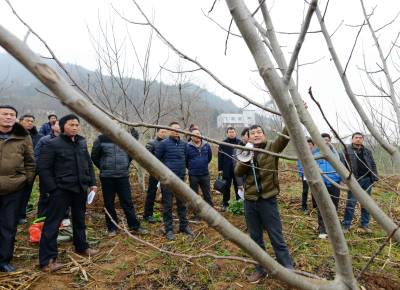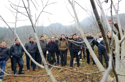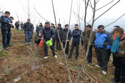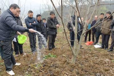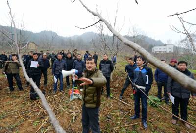 2月27日,核桃技术员在保康县城关镇三溪沟村为村民讲解核桃施肥、修枝、松土、防虫等春管技术。 当日,保康县各乡镇的农业分管领导、核桃技术员、核桃专业合作社社员、核桃种植大户等200多人,在该县城关镇三溪沟村核桃基地参加核桃春管技术现场培训。 目前,正是核桃春管大好时机,保康县各地农民纷纷对核桃进行春季管理,确保秋季核桃丰产丰收。 据了解,保康县已发展核桃面积50万亩,成为保康县最大特色支柱产业。(视界网 陈泉霖 旷微 摄)