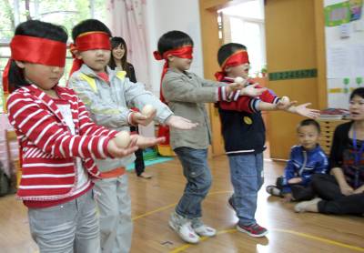 蒙着眼睛,体验在漆黑中摸索前行。为迎接即将到来的全国助残日,昨日上午,荆门市东宝区龙泉街道西门社区居民与市城建幼儿园的师生们蒙上眼睛,体验盲人日常生活中不便与烦恼,以此唤起大家对残疾人的关爱。郭立罗晓菊摄