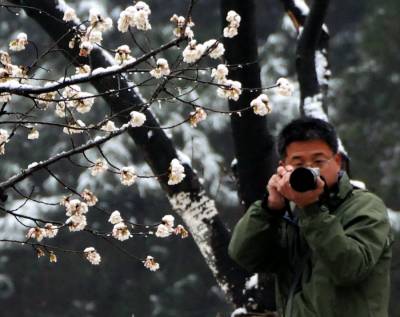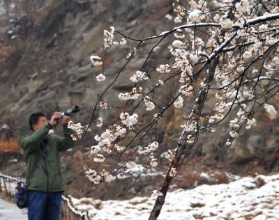 湖北十堰:书香满园春意浓 樱满枝头花正好 校园为民众开放赏花