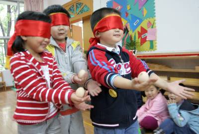 蒙着眼睛,体验在漆黑中摸索前行。为迎接即将到来的全国助残日,昨日上午,东宝区龙泉街道西门社区居民与市城建幼儿园的师生们蒙上眼睛,体验盲人日常生活中不便与烦恼,以此唤起大家对残疾人的关爱。郭立罗晓菊摄