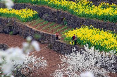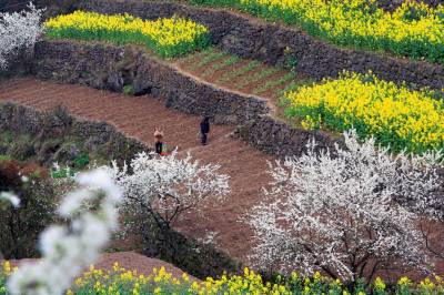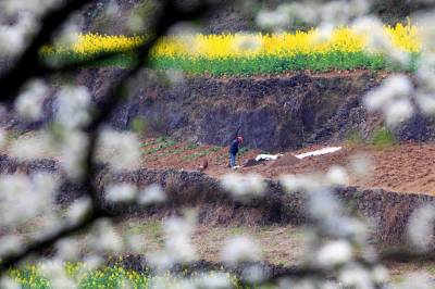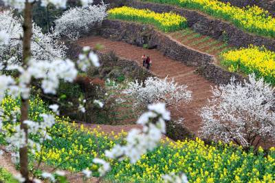 湖北十堰:书香满园春意浓 樱满枝头花正好 校园为民众开放赏花