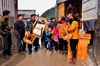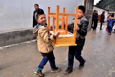 3月1日,恩施州宣恩县万寨乡白果中心小学的学生们收到了一份特殊的开学礼物,该县经信局为学校赠送了120套崭新的课桌椅。 宣恩县万寨乡白果中心小学教学配套设施落后,学生课桌椅的“服役”年限太长,桌椅已经散架,影响学生学习。老师用的讲台是学生淘汰的课桌拼凑而成,摇摇晃晃破旧不堪。 在了解到该情况后,宣恩县经信局筹措资金购置新课桌椅,赶在开学当天送抵学校。