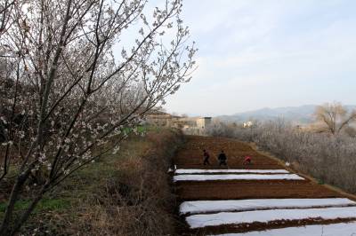 3月1日,房县城关镇八里村农民李建民(中)在播种美国大樱桃种子。该县釆取引种、嫁接的形式,发展欧洲、亚洲大樱桃生态园。目前,美国、日本、意大利、乌克兰等国家大樱桃种子、树苗落户房县,己挂果的大樱桃树达300多亩。欧洲、亚洲国家大樱桃具有颗粒大、色鲜、味美和易储存的特点,广受消费者亲睐。据悉,该县计划将建成全省最大的大樱桃种苗基地、十里樱桃长廊带,促进农民致富增收。