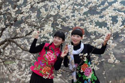 湖北十堰:书香满园春意浓 樱满枝头花正好 校园为民众开放赏花