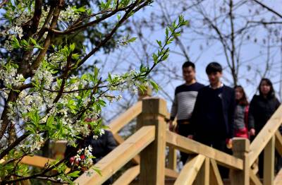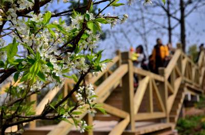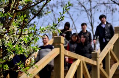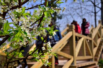 湖北十堰:书香满园春意浓 樱满枝头花正好 校园为民众开放赏花