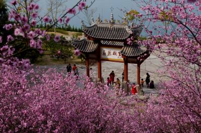 湖北十堰:书香满园春意浓 樱满枝头花正好 校园为民众开放赏花
