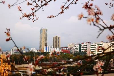 湖北十堰:书香满园春意浓 樱满枝头花正好 校园为民众开放赏花