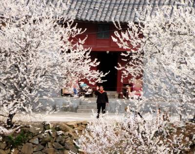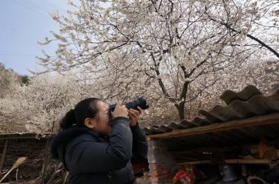 湖北十堰:书香满园春意浓 樱满枝头花正好 校园为民众开放赏花
