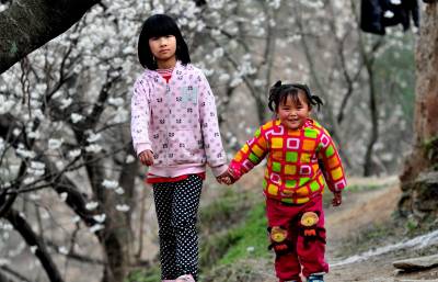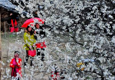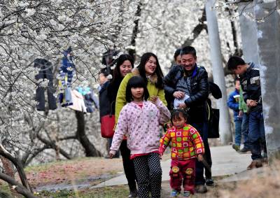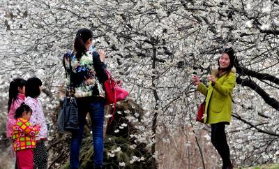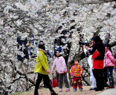 湖北十堰:书香满园春意浓 樱满枝头花正好 校园为民众开放赏花