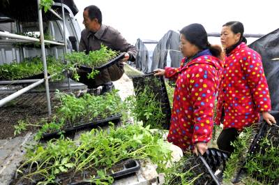 3月4日,外地农民在鄂州市燕矶镇池湖生态园购买番茄苗种。燕矶镇去年从以色列引进良种无公害生态番茄,通过种植,市场前景十分看好。当今正是番茄育种的关键时节,燕矶镇将良种番茄推广到各地种植,以扩大生态种植范围。