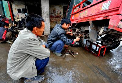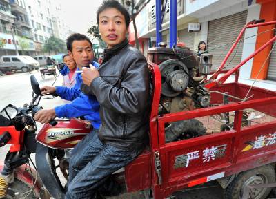 14日一大早,位于宣恩县珠山镇甘溪村的一农机修理店前,农民等候修理三轮摩托车。这位农民说:”要马上修好车运送秧苗到田间。”如今的山区农民,生活已离不开”机械化”——运用农资使上汽车自不用说,农民修条机耕路、修房子打地基要用挖土机;耕田耕土要用耕整机;烟叶生产用上播种机;肥料、秧苗等还可以用三轮摩托运到田坎上,就连砍猪草也用上了机器……这些,减小了农民的劳动强度,提高了农民劳动效率,保证了农民生活质量。(视界网签约摄影师:宋文摄)