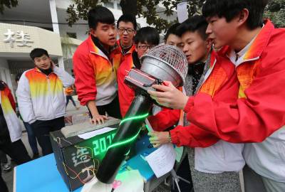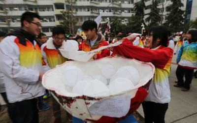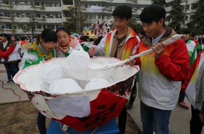 湖北十堰:书香满园春意浓 樱满枝头花正好 校园为民众开放赏花
