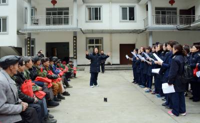 湖北十堰:书香满园春意浓 樱满枝头花正好 校园为民众开放赏花