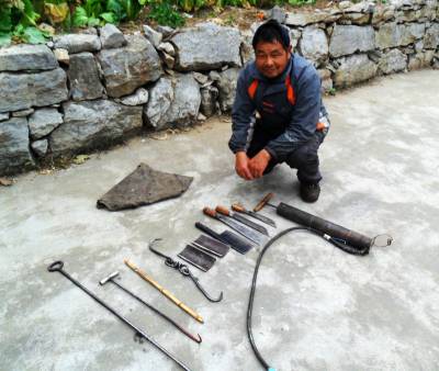杀猪佬是九佬十八匠之一。杀猪佬的主要工具有点刀(杀猪刀)、砍骨刀、刮毛刀、划血刀、铁刨子、镣款、铁顶撞、竹撑杆、铬铁、篾制刀篓子。杀猪的农户准备的工具有拴子(棕叶制成),木质腰盆(烫猪拔毛用)、杀凳(把猪拉到上面递刀)、木质血盆(接猪血用,血盆中放一点冷水和少量食盐、辣椒面。)、开水。