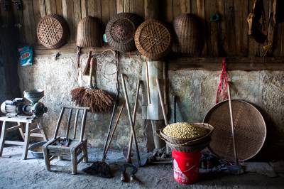 摄于2007年5月6日至2015年1月10日,拍摄于恩施市、建骀县;作者:陈力(实名);工作单位:恩施州商务局(地址:恩施市清江东路9号州商务局,445000);联系电话:13907269510;民俗事项说明:恩施土家族苗族自治州是湖北省典型的以传统农业经济为主的地区。但是,在二十世纪末期到21世纪初叶的这二三十年间,在全国城镇化浪潮冲击下,这个地区几乎是在一夜之间,传统农业近于土崩瓦解。如今,这里的“90”后基本上不会下地种田,在原野上劳作的全部是中老年人;生产工具也发生了根本性变化,小型拖拉机及其它小型农机具的推广,使传统的耕牛犁地成了一种难得一见的博物馆藏式的景观。走进一些农家,墙壁上、屋子内,收藏的是一些已经退出历史舞台的农具,给人一种“刀枪入库、马放南山”的沧桑感。有人曾经感慨一些独特的文艺表演技艺无人传承,现在,更令人感慨的是种田这种活儿也有了无人继承的忧虑。但历史的向前发展的,历史也是聪明的,相信随着我国现代化进程的加快,传统农业一定会找到适宜的出路。这里纪录的是恩施山区传统农耕的一些片断,算是对也许会消失的传统农业的一份纪念。