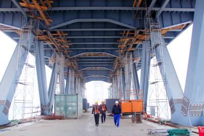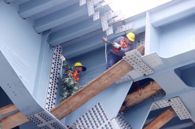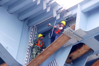 本报荆州讯(通讯员 孟庆虎) 3月5日,随着大桥首跨钢梁最后一块重达65吨的公路桥面板稳稳就位,至此,标志着由中铁大桥局承建的蒙华铁路公安长江公铁两用特大桥非通航孔首孔钢梁架设成功。