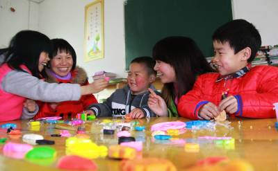 3月5日元宵节,竹山县宝丰镇天英留守儿童托管中心的孩子们在“爱心妈妈”的陪伴下开心捏橡皮泥。针对留守儿童管理、教育等难题,该县全面实施“爱心妈妈”关爱留守儿童结对帮扶温暖工程,让“爱心妈妈”成为全县万余名留守儿童思想品德的辅导员、情感交流的沟通员、日常行为的监护员、生活起居的管理员、健康成长的指导员。